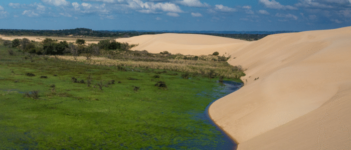 Unique natural attraction where desert-like sand dunes meet lush tropical savanna and forest. Visitors can explore its rolling dunes—some as high as 12 meters—lush trails, and a serene lagoon. It’s also a wildlife-rich area home to sloths, anteaters, armadillos, ocelots, and over 280 bird species, making it a fascinating spot for both nature lovers and adventure seekers.